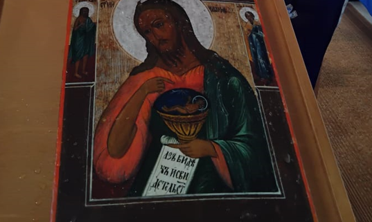Перевод: Пророк и Предтеча пришествия Христова, достойно восхвалить тебя не можем мы, с любовью почитая тебя; ибо бесплодие родившей и немота отца окончились славным и священным твоим рождеством, и воплощение Сына Божия миру возвещается.
