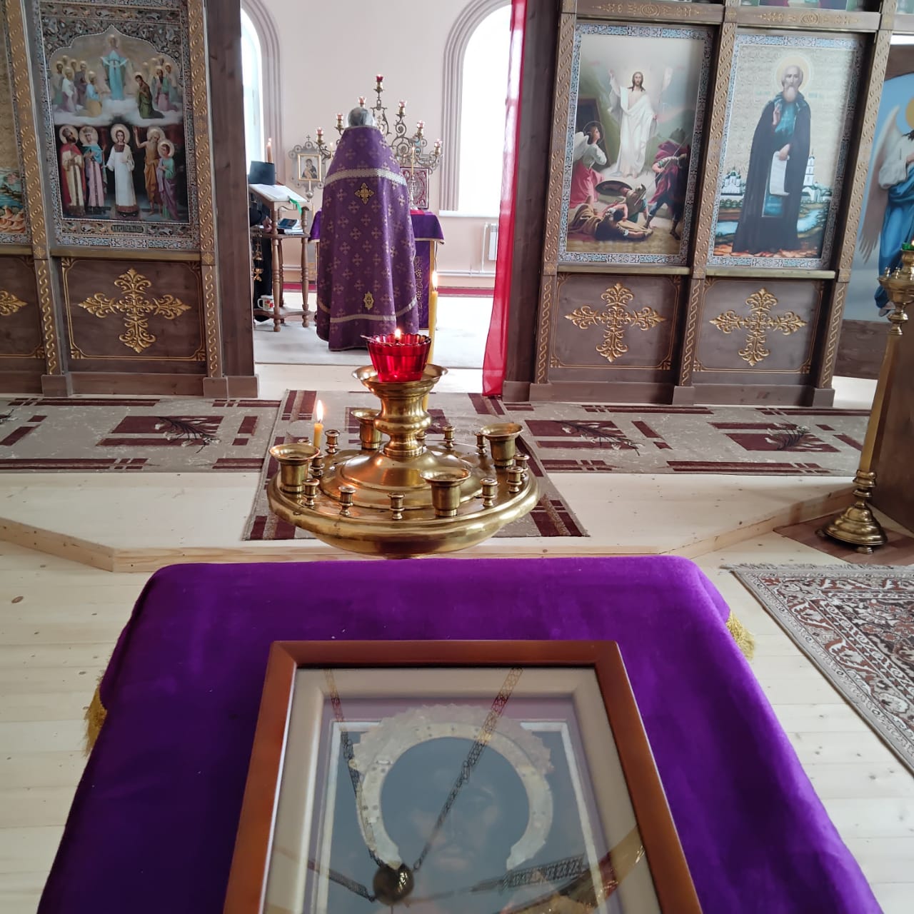Перевод: Спаси, Господи, людей Твоих и благослови все, что принадлежит Тебе. Даруй победы над врагами, и сохрани силою Креста Твоего тех, среди которых пребываешь Ты.