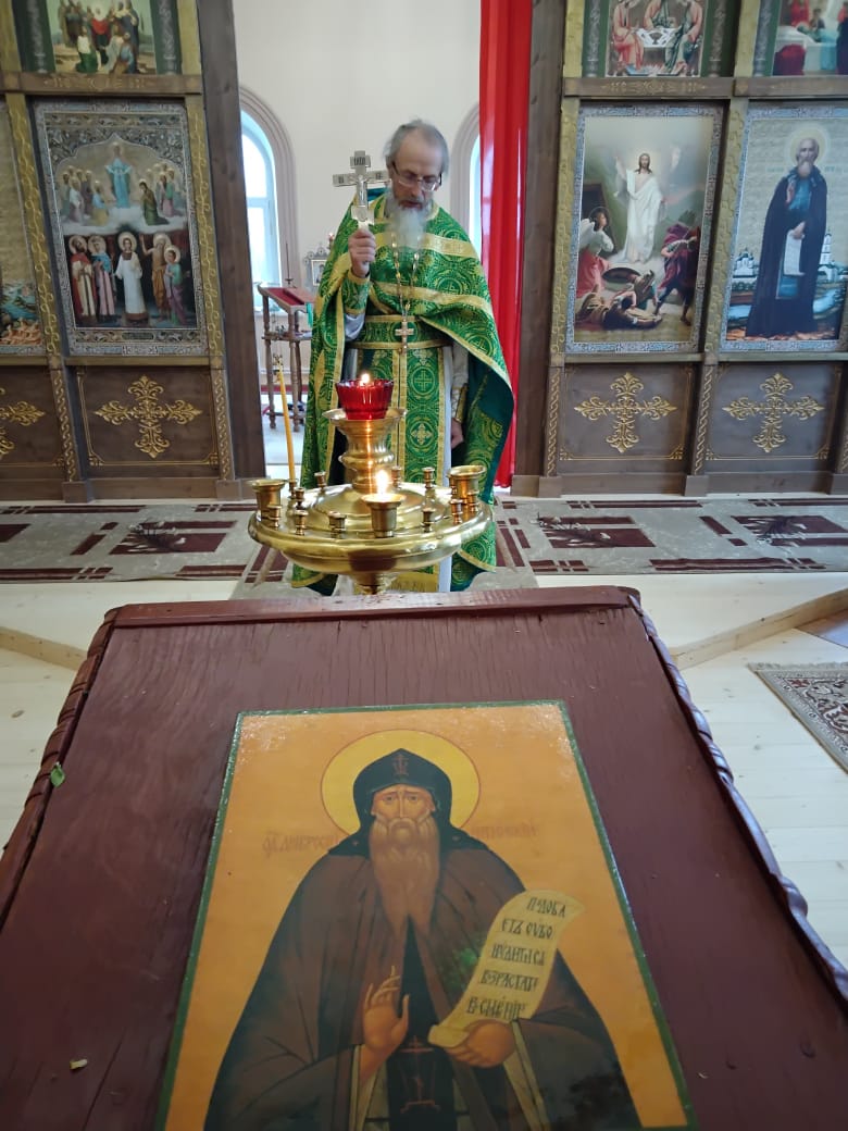Перевод: Завет Пастыреначальника исполнив, ты наследовал благодать старчества, болея сердцем обо всех, с верой приходящих к тебе, потому и мы, чада твои, с любовью взываем к тебе: «Отче святой Амвросий, моли Христа Бога о спасении душ наших».