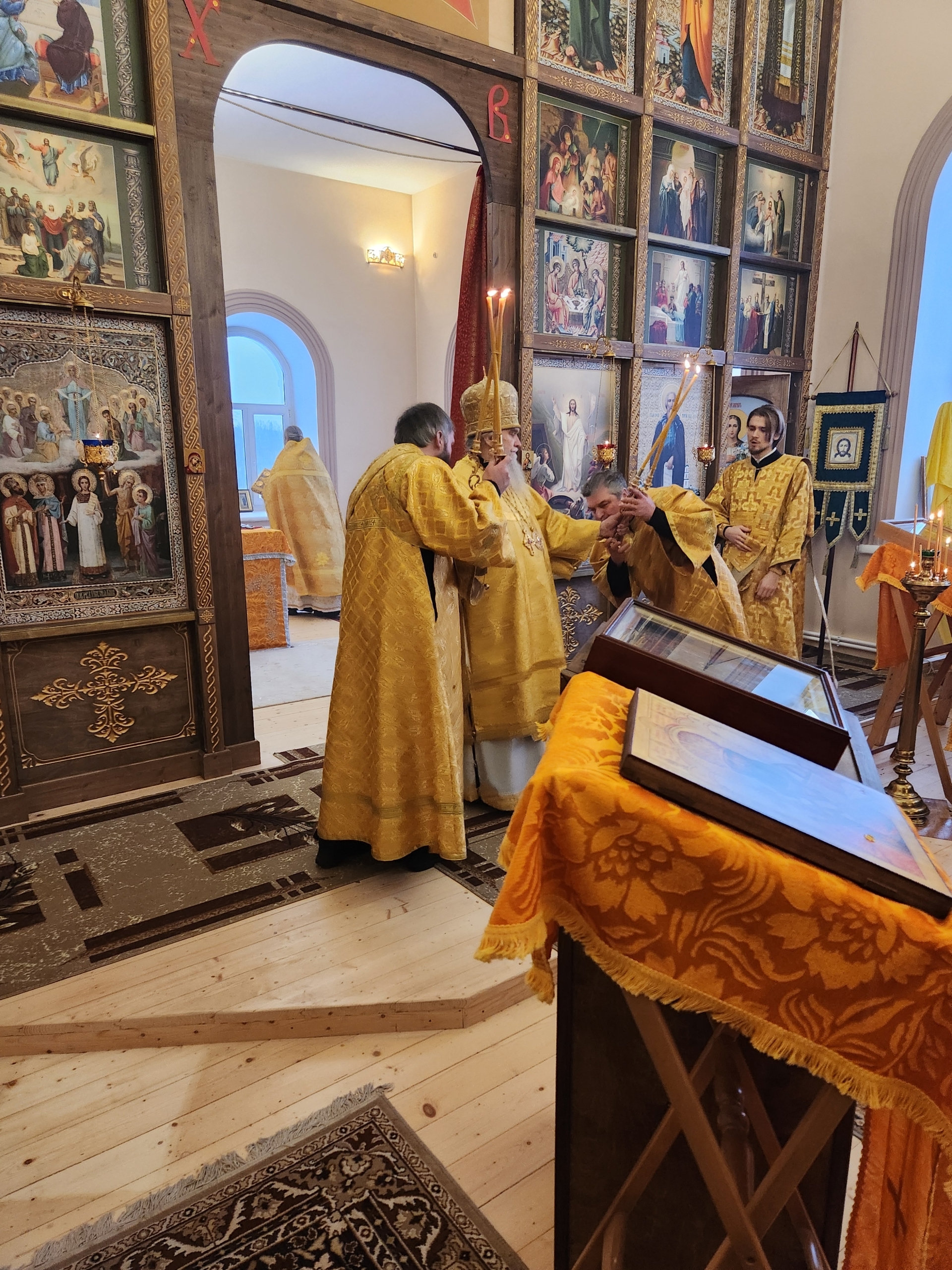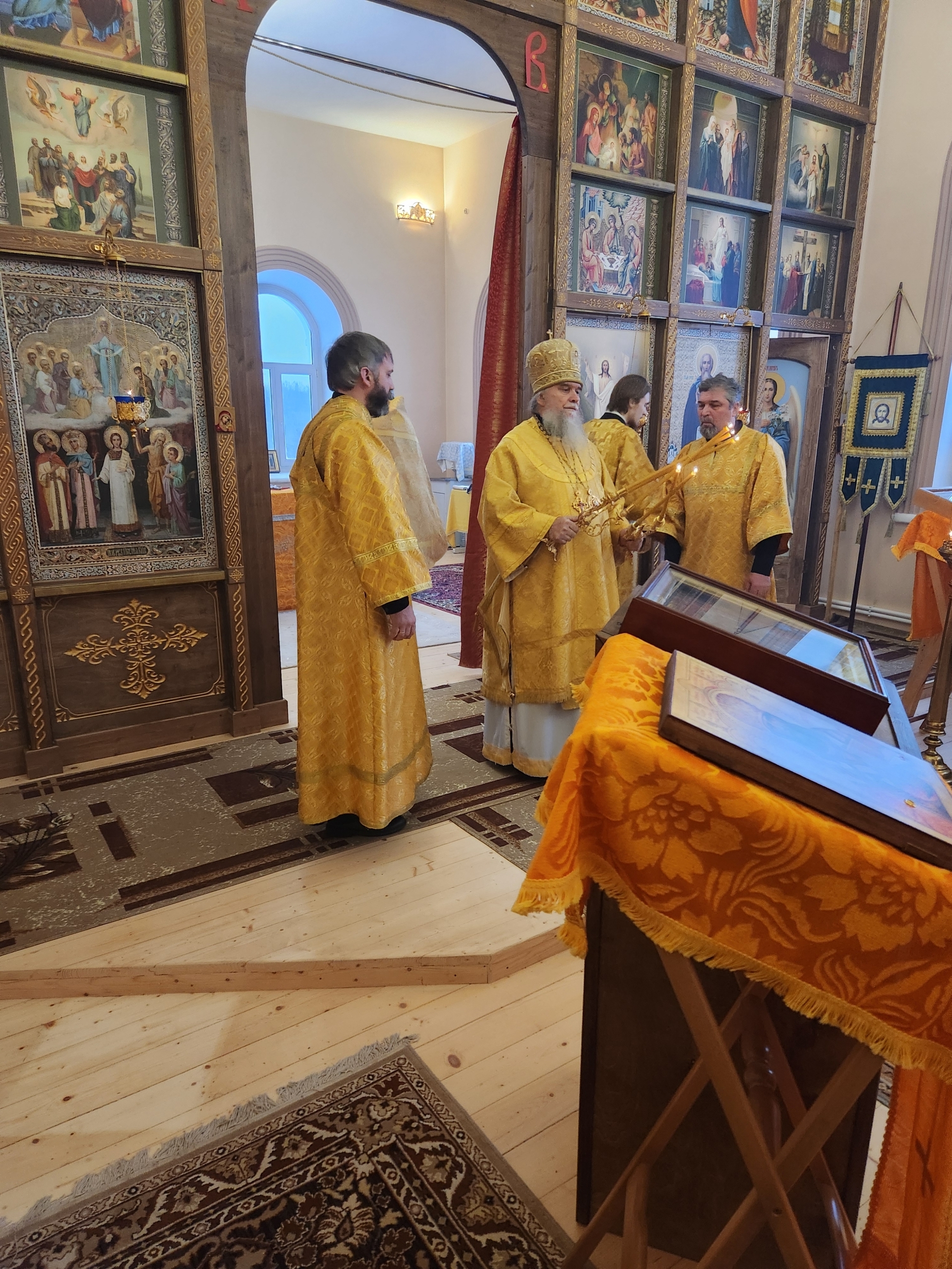 28 декабря 2025 года Божественную Литургию возглавил Преосвященный епископ Вениамин (Лихоманов) правящий архиерей Рыбинской епархии.