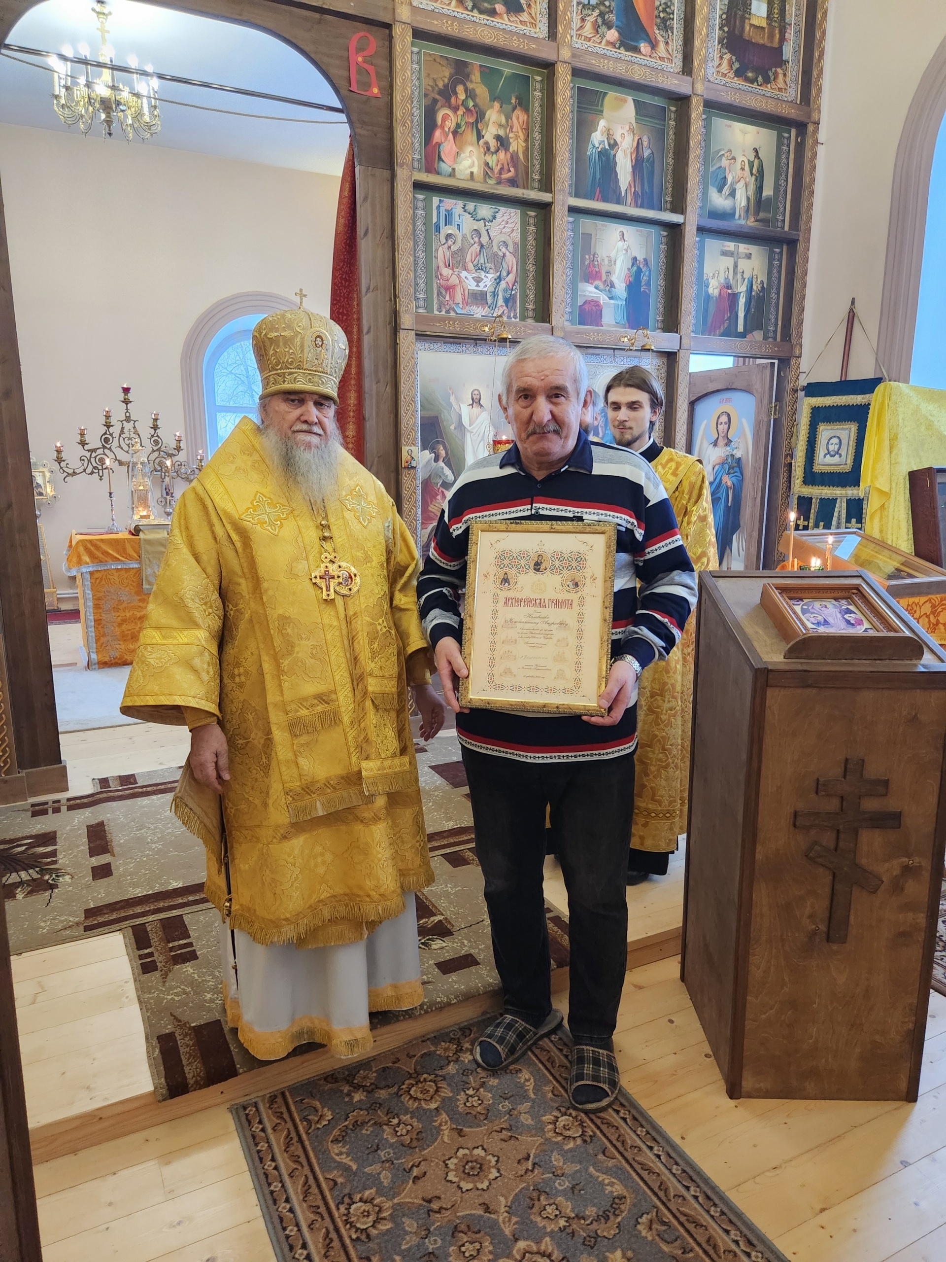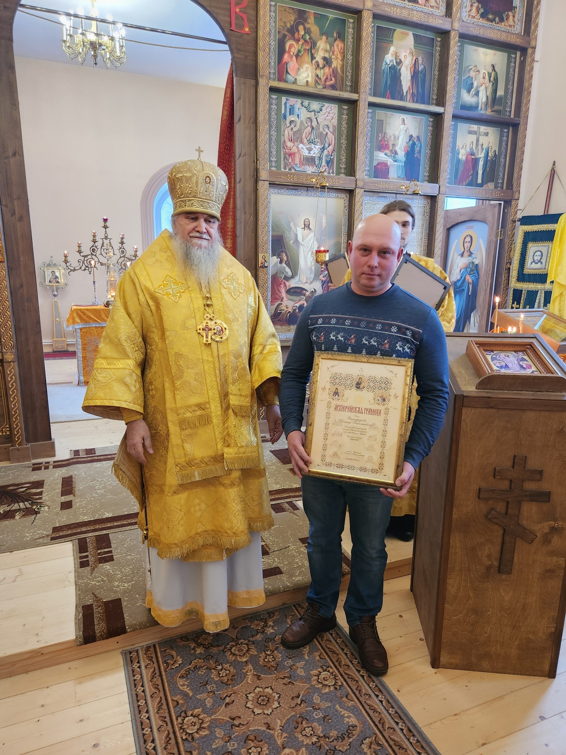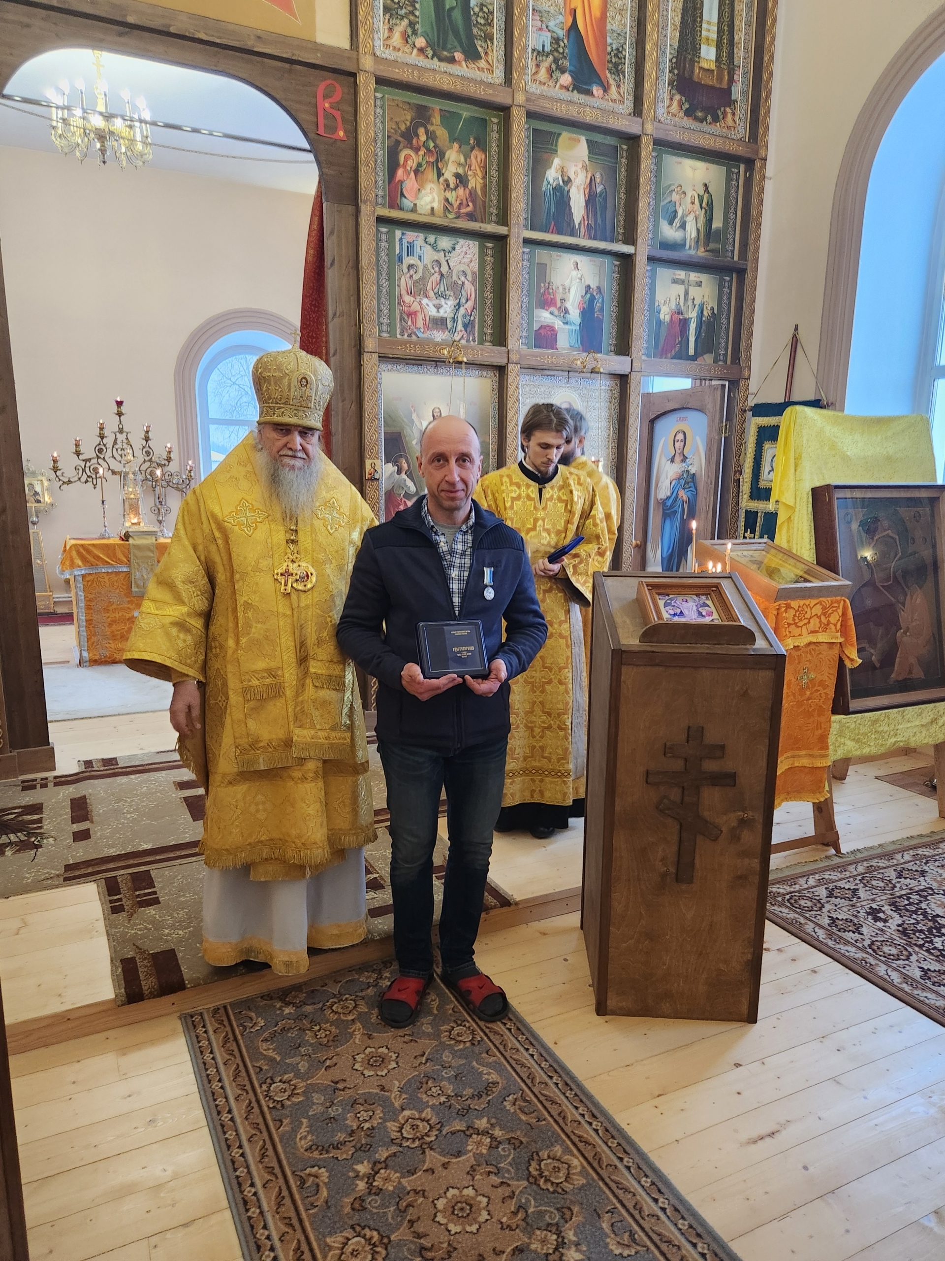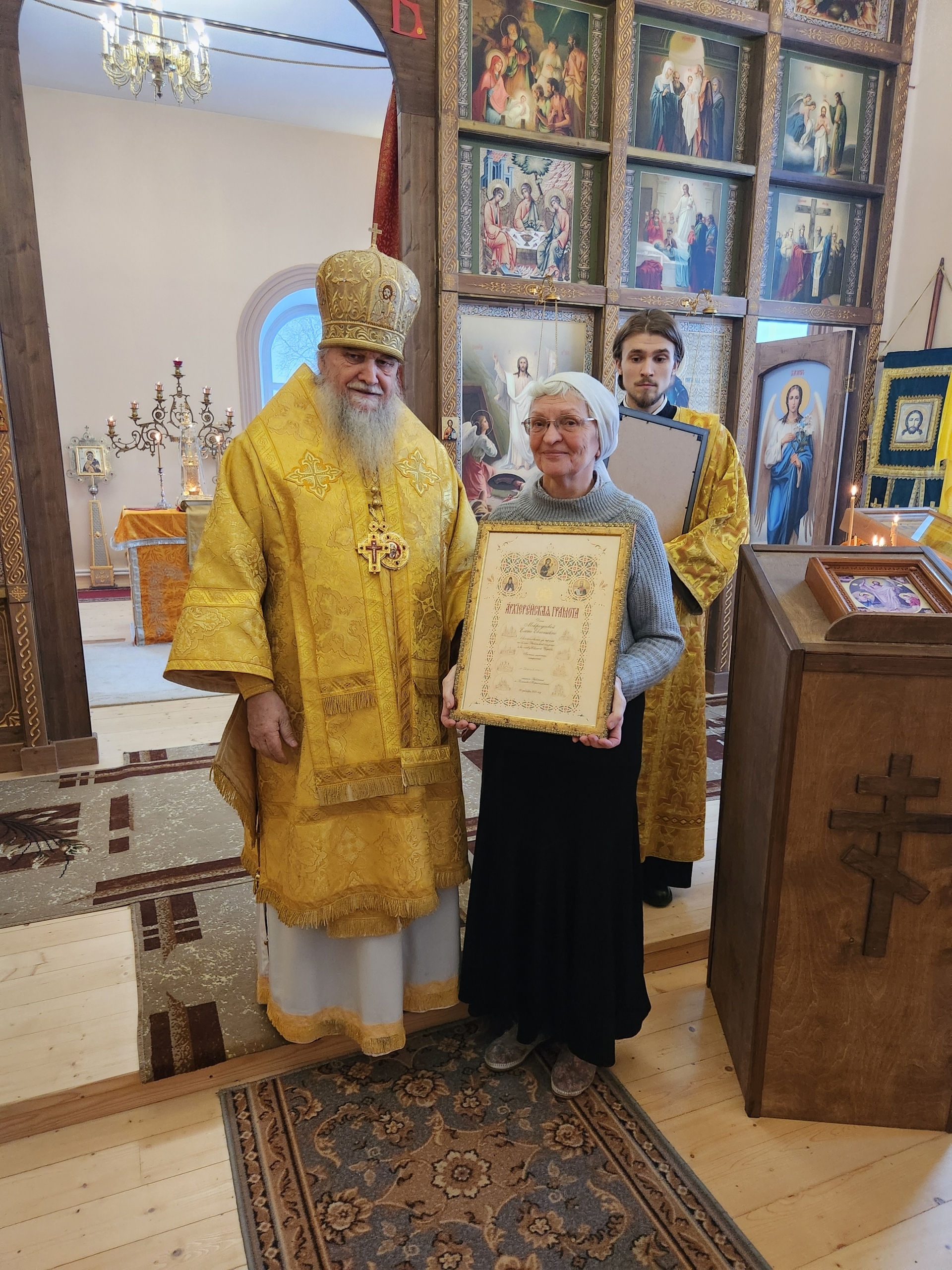 После Божественной Литургии епископ Вениамин (Лихоманов) торжественно наградил медалями и грамотами потрудившихся в нашей святой Обители. Господи, даруй им благодать Духа Твоего Святаго на многие лета жизни!