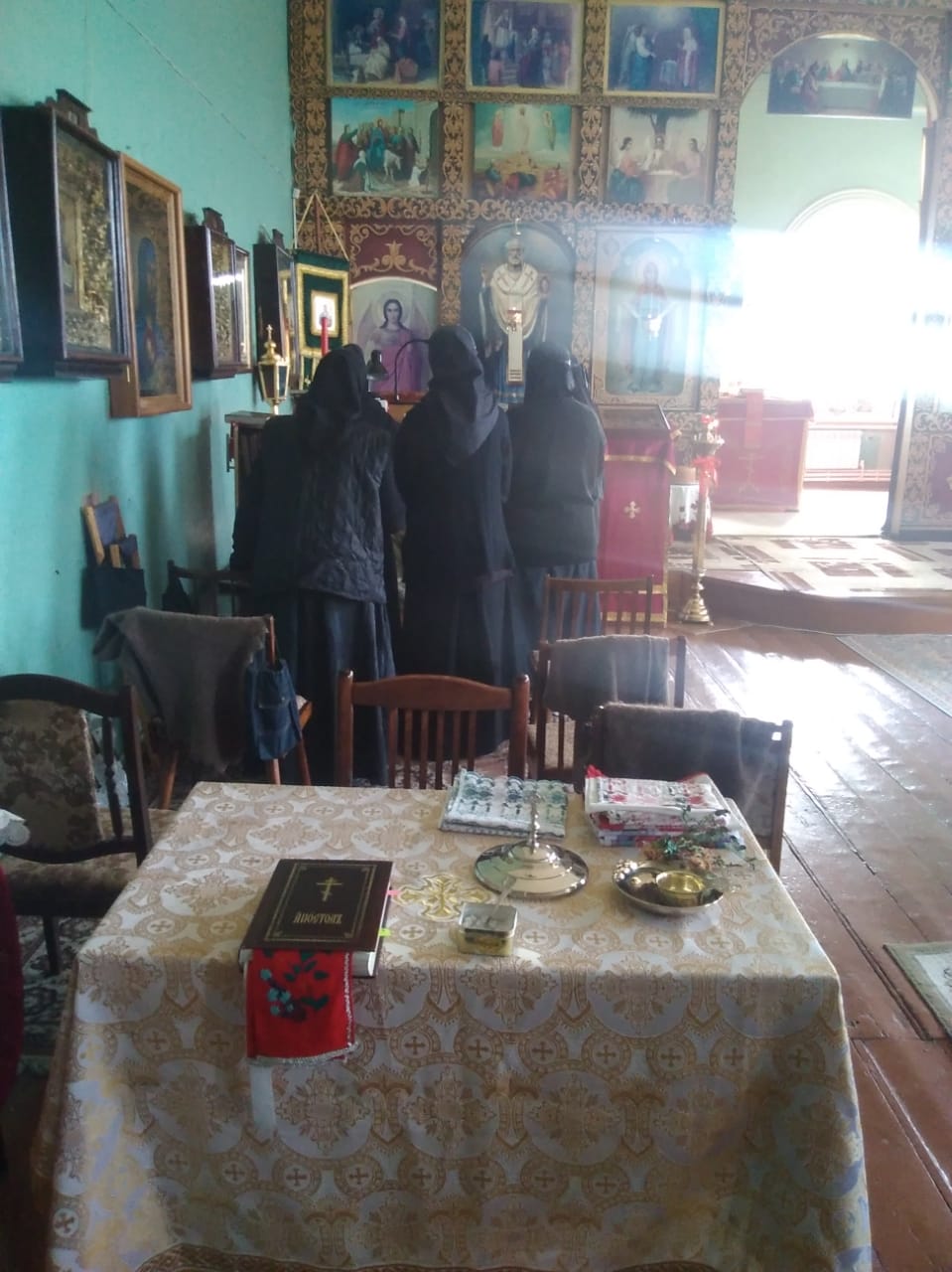В пятницу Светлой седмицы в обители отслужили водосвятный молебен и совершили Крестный ход, потом окропили всю территорию обители, чтобы вся земля порадовала Пасхе.