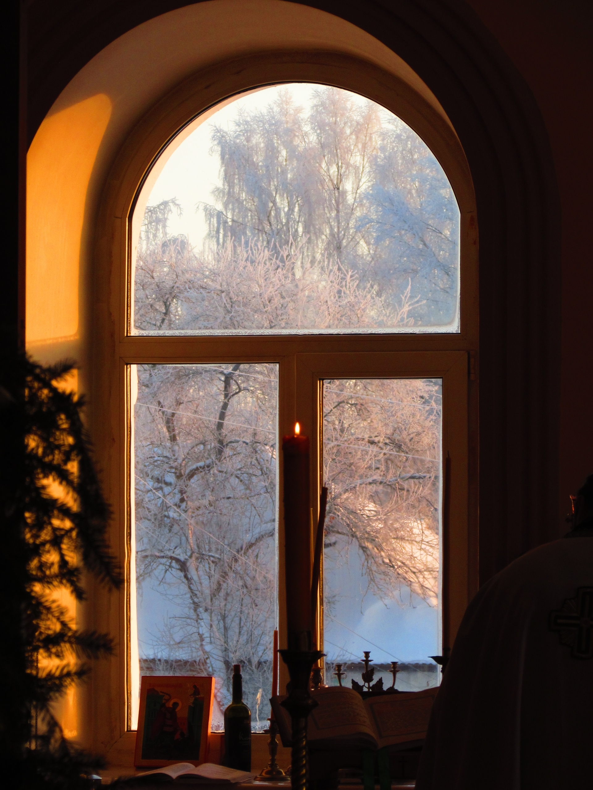 Рождество́ Твое́, Христе́ Бо́же наш,/ возсия́ ми́рови свет ра́зума,/ в нем бо звезда́м служа́щии,/ звездо́ю уча́хуся,/ Тебе кла́нятися Со́лнцу Пра́вды,/ и Тебе́ ве́дети с высоты́ Восто́ка: // Го́споди, сла́ва Тебе́.